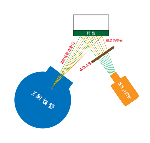 (1) 用低本底及窗更薄的正比計數管代替原來的正比計數器。調整了射線源、探測器及樣品之間的距離和角度。調整了次級濾光片的厚度。